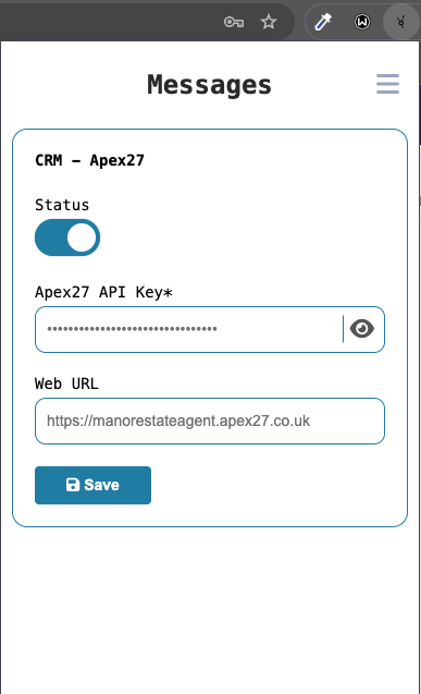 • Turn On “CRM - Apex27” -> Status -> Turn this setting on to use CRM:Apex27
