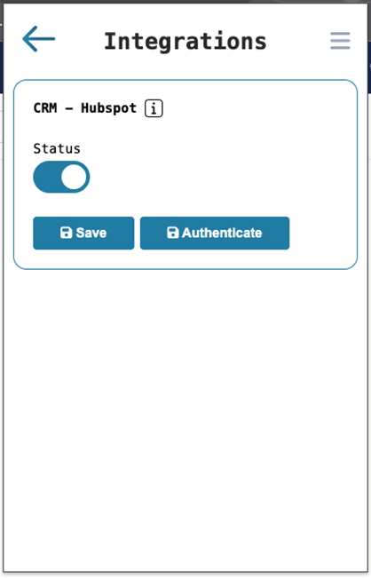 • Turn On “CRM - Hubspot” -> Status -> Turn this setting on to use CRM:Hubspot