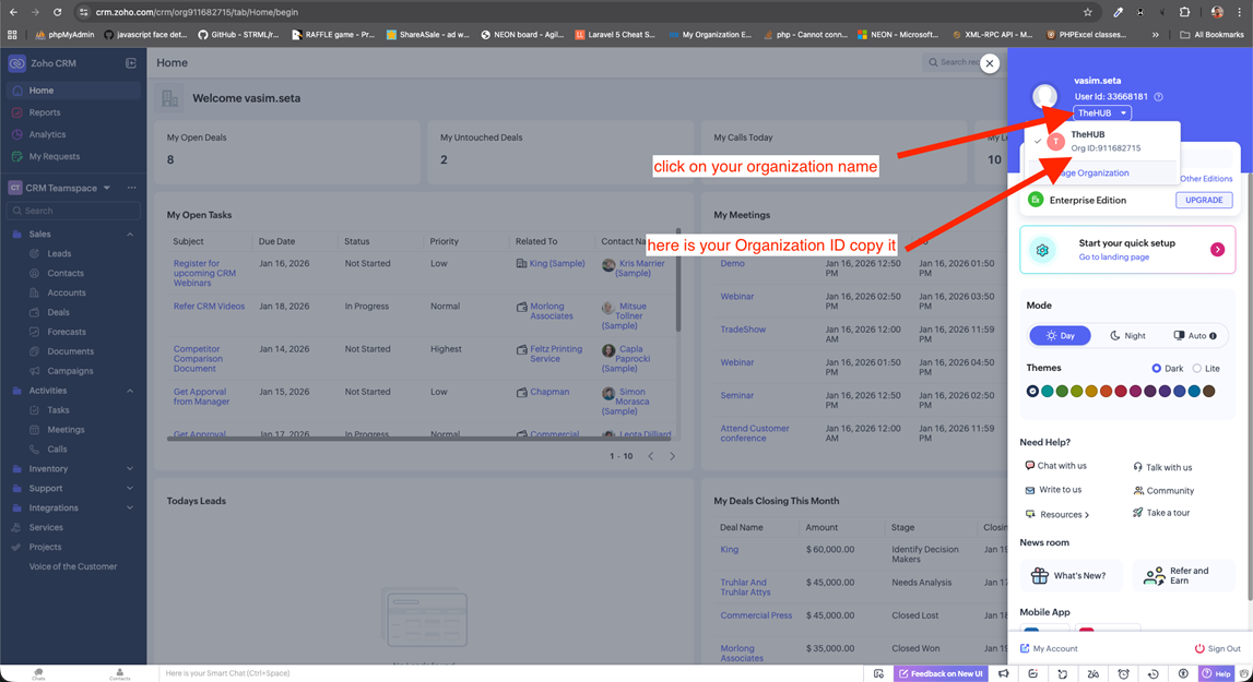 • Click on your Organization Name and there you see your Organization ID, Copy it!